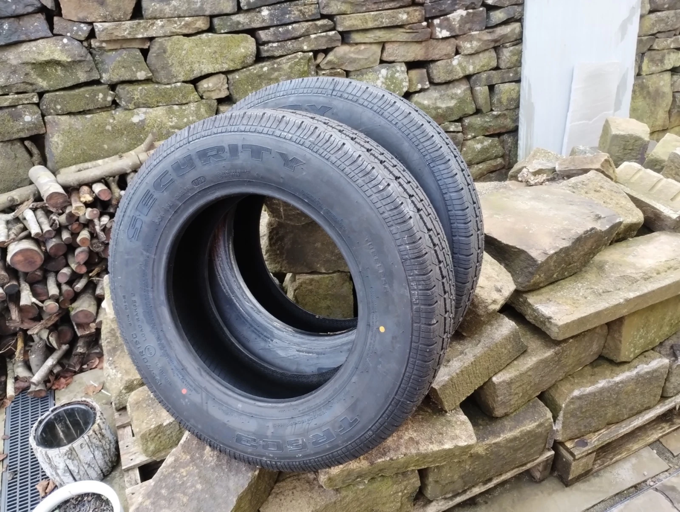 For sale: PAIR brand new and unused Security TR603 195/60 R15C caravan tyres - as fitted by Bailey.